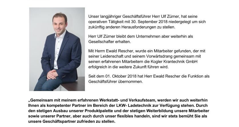 Kogler Krantechnik begrüßen zu dürfen.