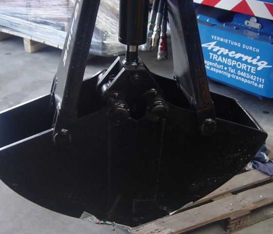 Greifer 75l Inhalt, Eigengewicht 140kg, Endlosrotator 3 to. einsatzbereit montiert, Sonderpreis € 1.000,–+Mwst , Neu noch nie im Einsatz !
