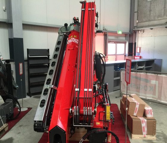 2x Zusatzleitungen bis Kranarmende, Scanreco Funkfernsteuerung 6 Funktionen, Led Beleuchtung am Knickarm, FSC/H Stützenüberwachung, Hydrauliktank am Kranfundament aufgebaut