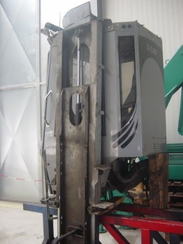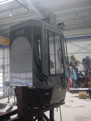X-Cab Kabine silber komplett mit Front,- und Seitentüre, inklusive hydraulischer Höhenverstellung von 1,2 m, inkl. Kransitz, Scheinwerfer am Dach, Scheibenwischanlage, Innenbeleuchtung mit Radio, Standheizung